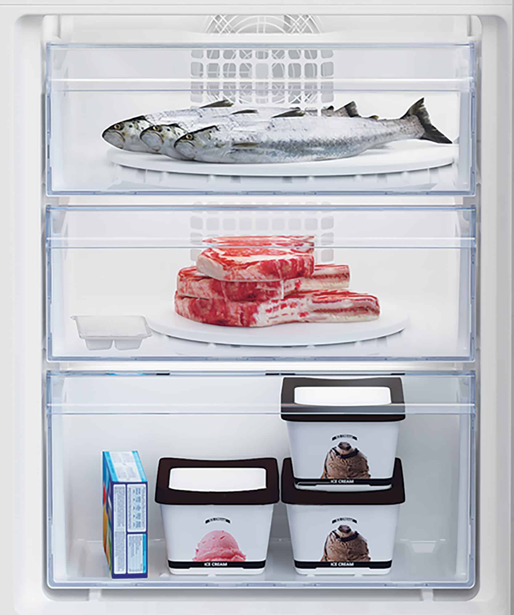 Inverterkompressori madalal kiirusel töötav BLDC-ventilaator on vastupidav ja minimaalse müratasemega. See tagab madalama energiatarbimise ning toetab jahutussüsteemi, minimeerides temperatuurikõikumisi (nt ukse avamisel).