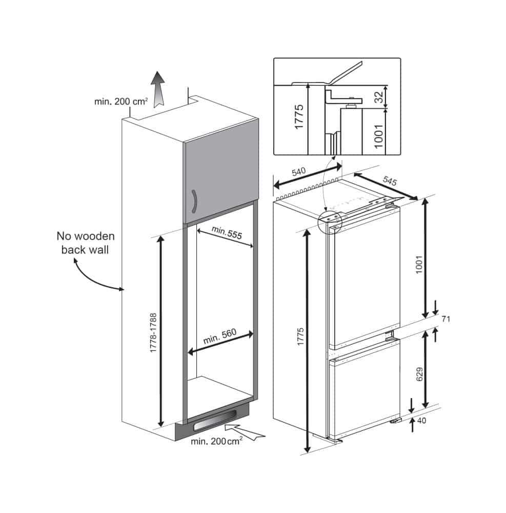 Integreeritav külmik Beko BCHA275K41SN, kõrgus , värvus , müratase dB 38, energiaklass E