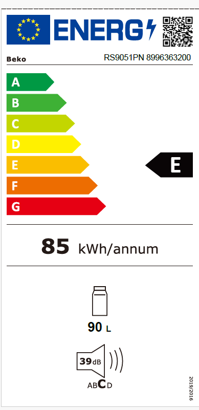 Jahekülmik Beko RS9051PN, kõrgus 85, värvus Roostevaba teras, müratase dB 39, energiaklass E