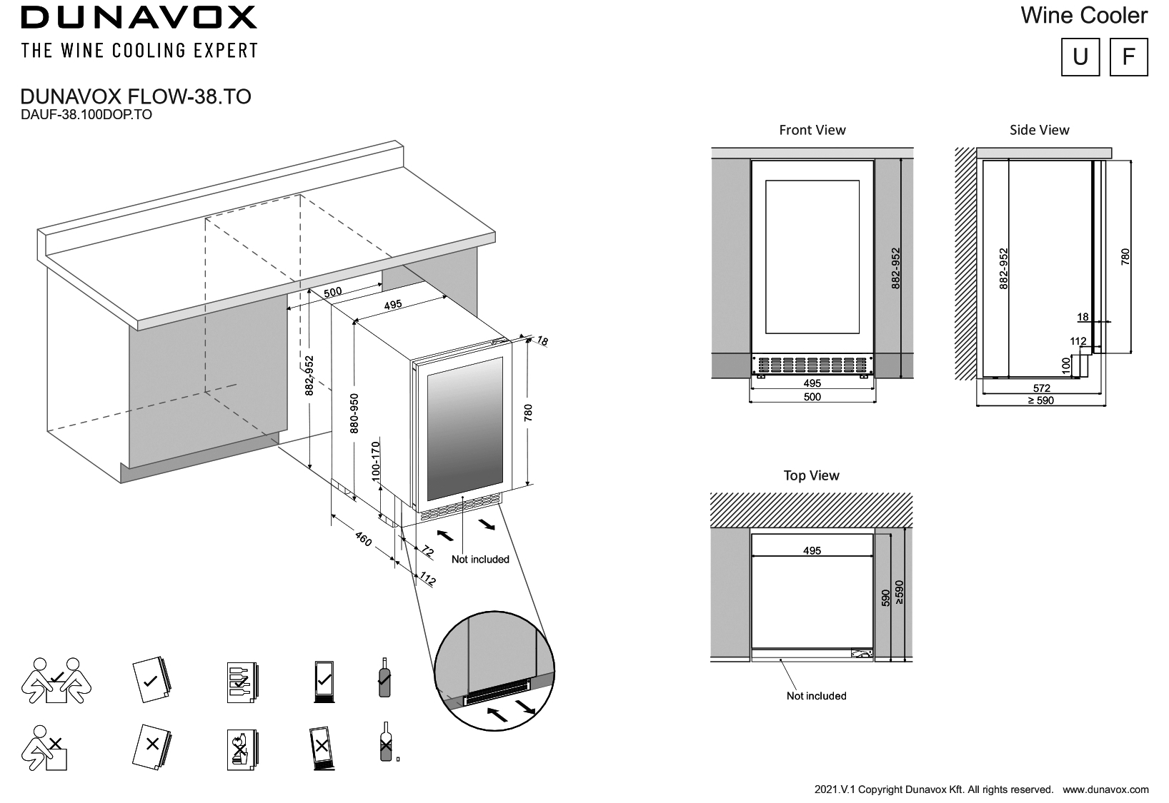 Kaetava uksega veinikülmik Dunavox DAUF-38.100DOP.TO