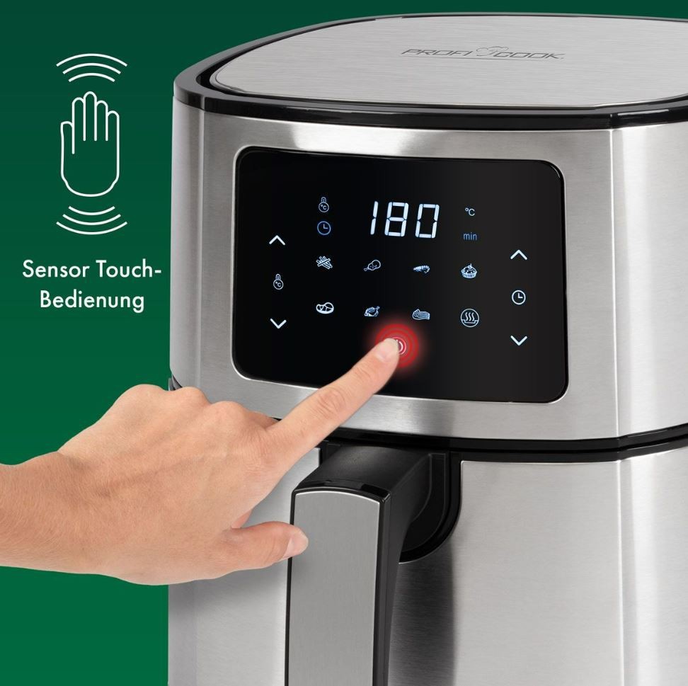 Suure mahutavusega 5,5 liitrine Proficook kuumaõhufritüür võimaldab valmistada kõike alates friikartulitest kuni suurte paneeritud krevettideni.