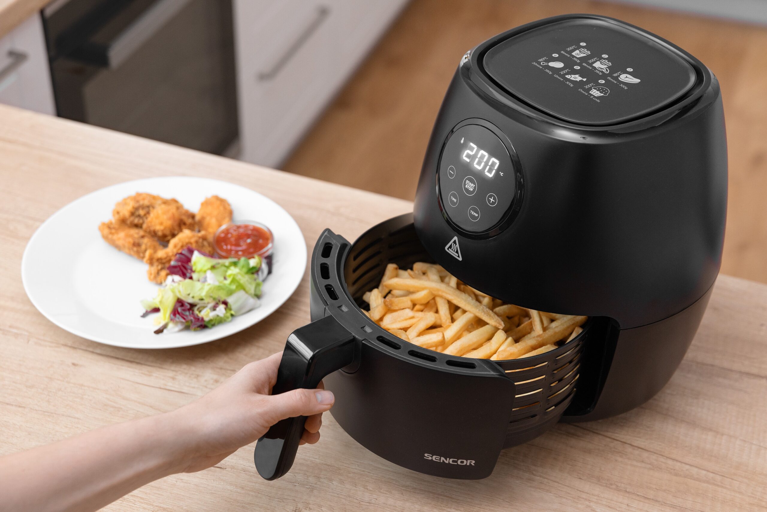 Kuumaõhufritüür Sencor valmistab õlivabalt maitsva ja tervisliku toidu.