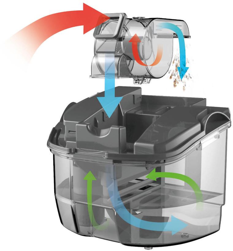 Duaalne filtreerimissüsteem ühendab endas kolmanda põlvkonna tsüklontolmuimeja võimsuse ja märgfiltreerimise tõhususe