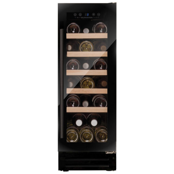 Elegantne musta käepidemega 30 cm laiune tööpinna alune veinikülmik Dunavoxilt.