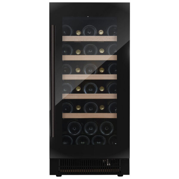 Klaasuksega musta käepidemega veinikülmik sobib ideaalselt modernsesse kööki.