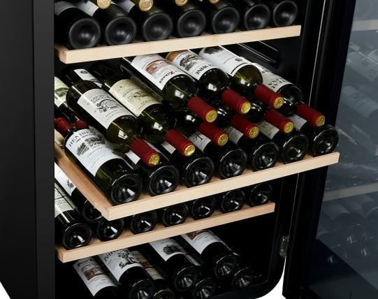 6 eri suurusega puidust riiulit on eemaldatavad ja disainitud eri tüüpi pudelitele – Alsatian, Burgundia, Champenoise jt. 2 riiulit on pudelite ristsuunaliseks ladustamiseks.
